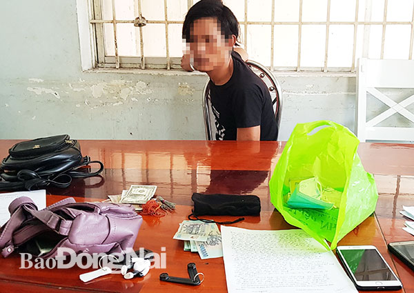 Một đối tượng và tang vật trong một vụ trộm tài sản bị Công an phường Hóa An (TP.Biên Hòa) bắt giữ